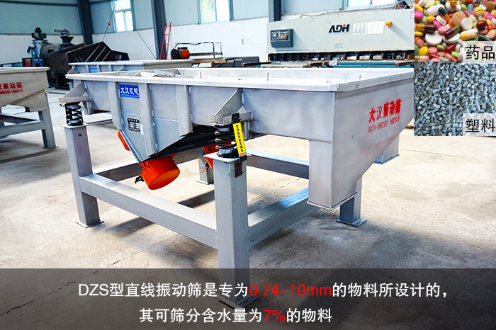 DZS型直線振動篩是專為0.74-10mm的物料所設計的,其可篩分含水量為7%的物料,主要的篩分物料是:磨料模具原料,塑料,化工,醫(yī)藥等干式的粉狀物料,以及細顆粒和細微粉物料等。